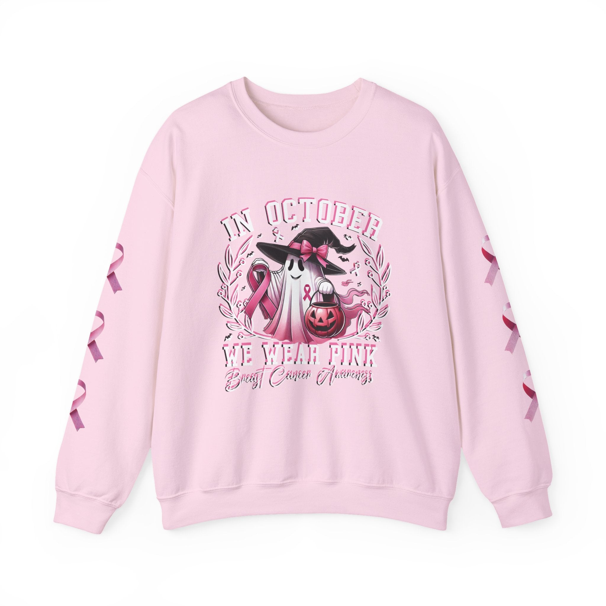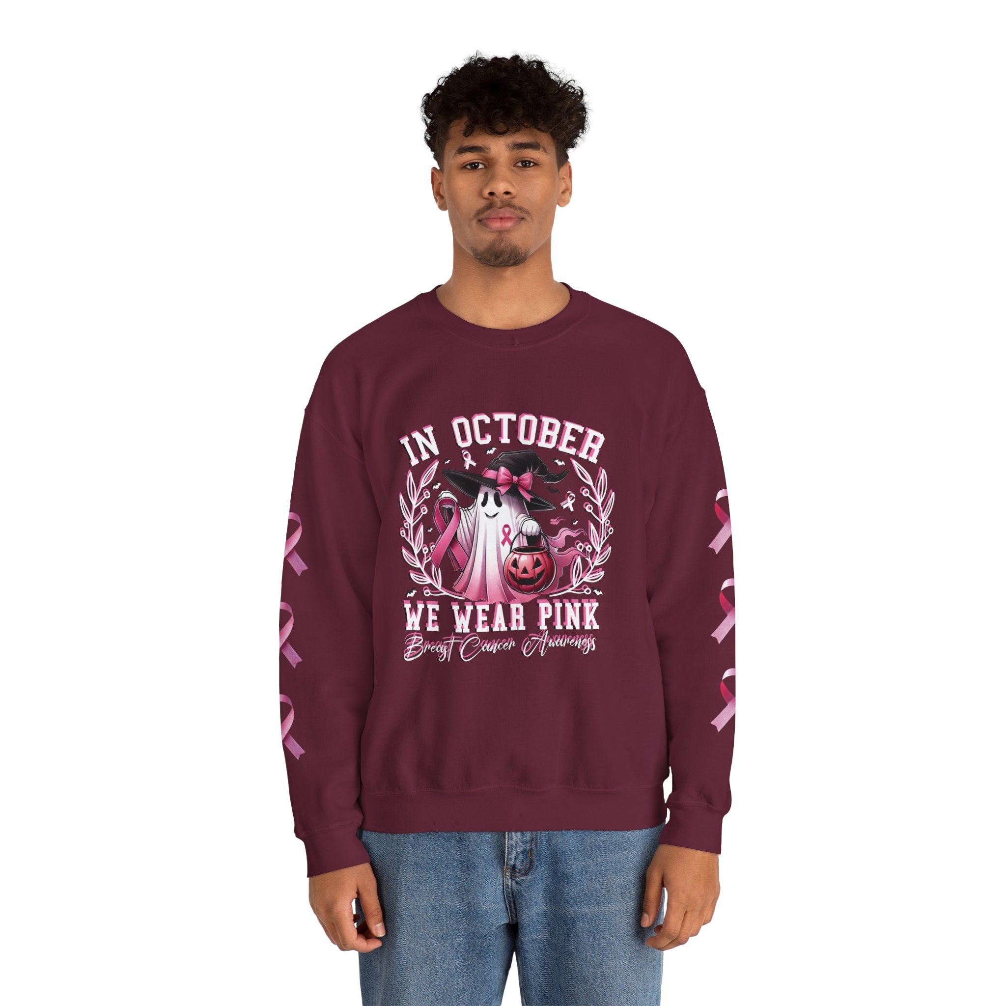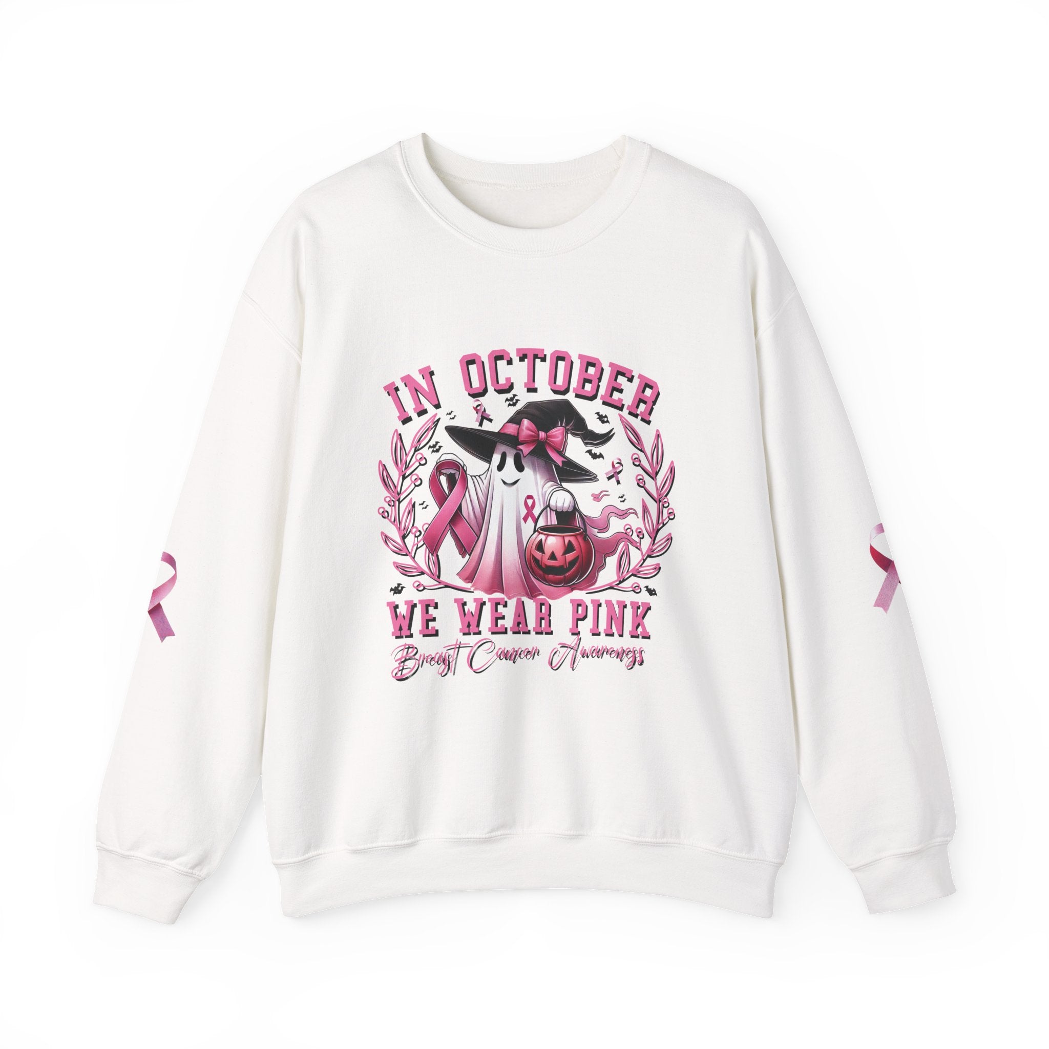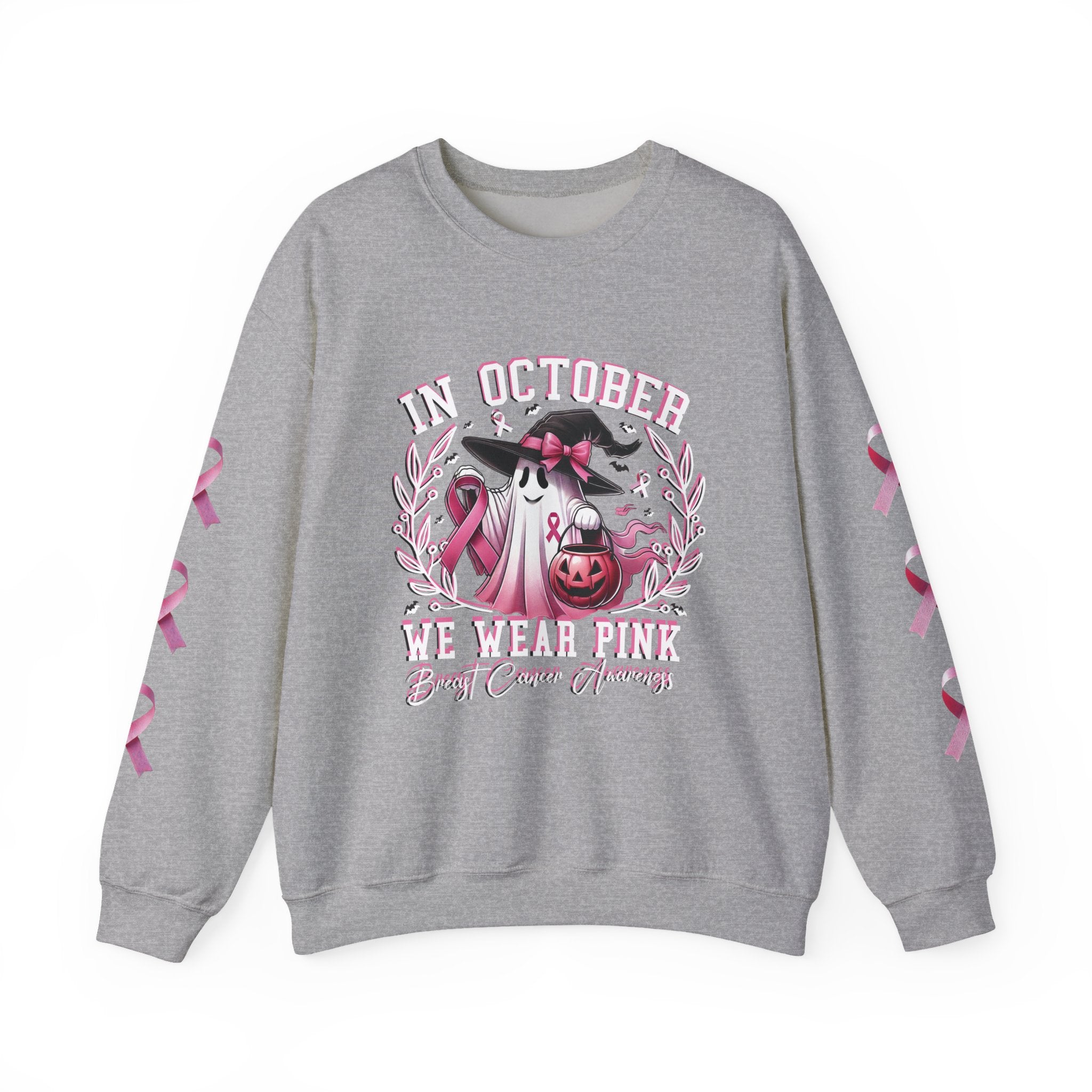 Spooky season meets strength. This pink crewneck sweatshirt fuses the spirit of Halloween with the power of breast cancer awareness. Featuring a bold ghost-in-ribbons graphic and sleeve details that stand out, it’s more than just a sweatshirt—it’s a statement of solidarity, resilience, and seasonal style. Cozy, durable, and awareness-driven, it’s designed to keep you warm while keeping the message alive.