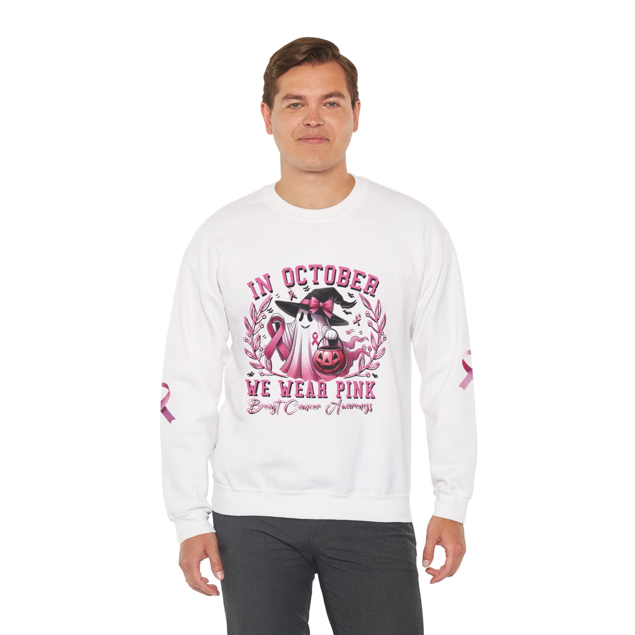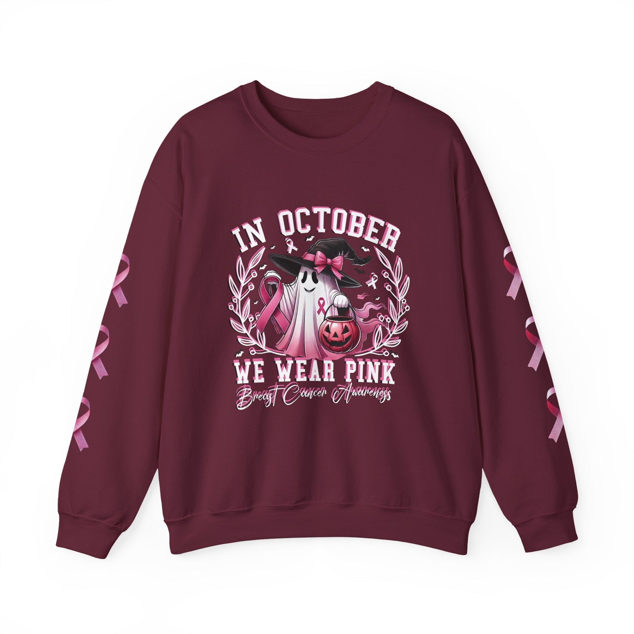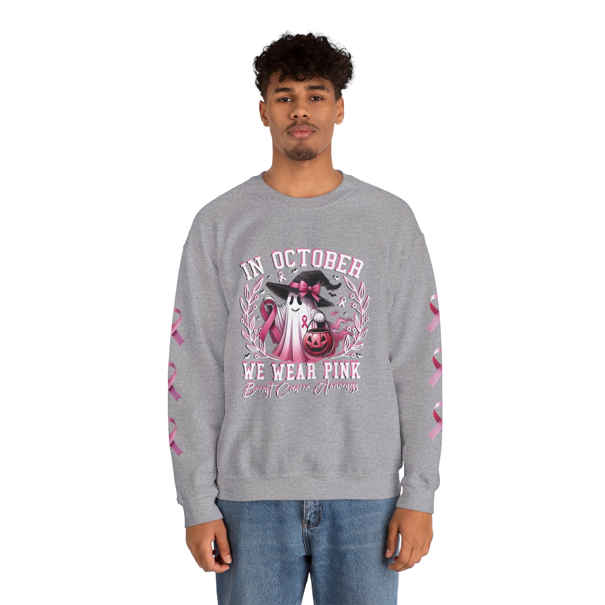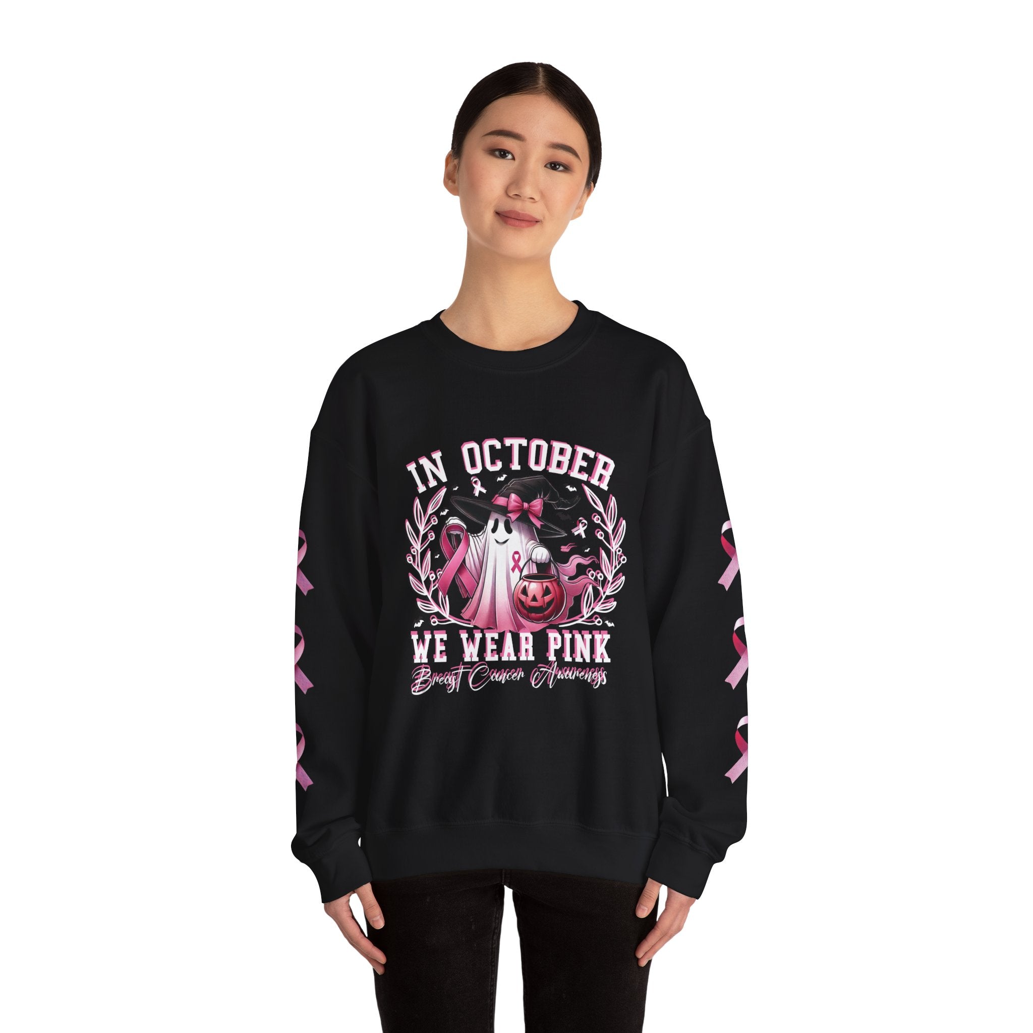 Spooky season meets strength. This pink crewneck sweatshirt fuses the spirit of Halloween with the power of breast cancer awareness. Featuring a bold ghost-in-ribbons graphic and sleeve details that stand out, it’s more than just a sweatshirt—it’s a statement of solidarity, resilience, and seasonal style. Cozy, durable, and awareness-driven, it’s designed to keep you warm while keeping the message alive.