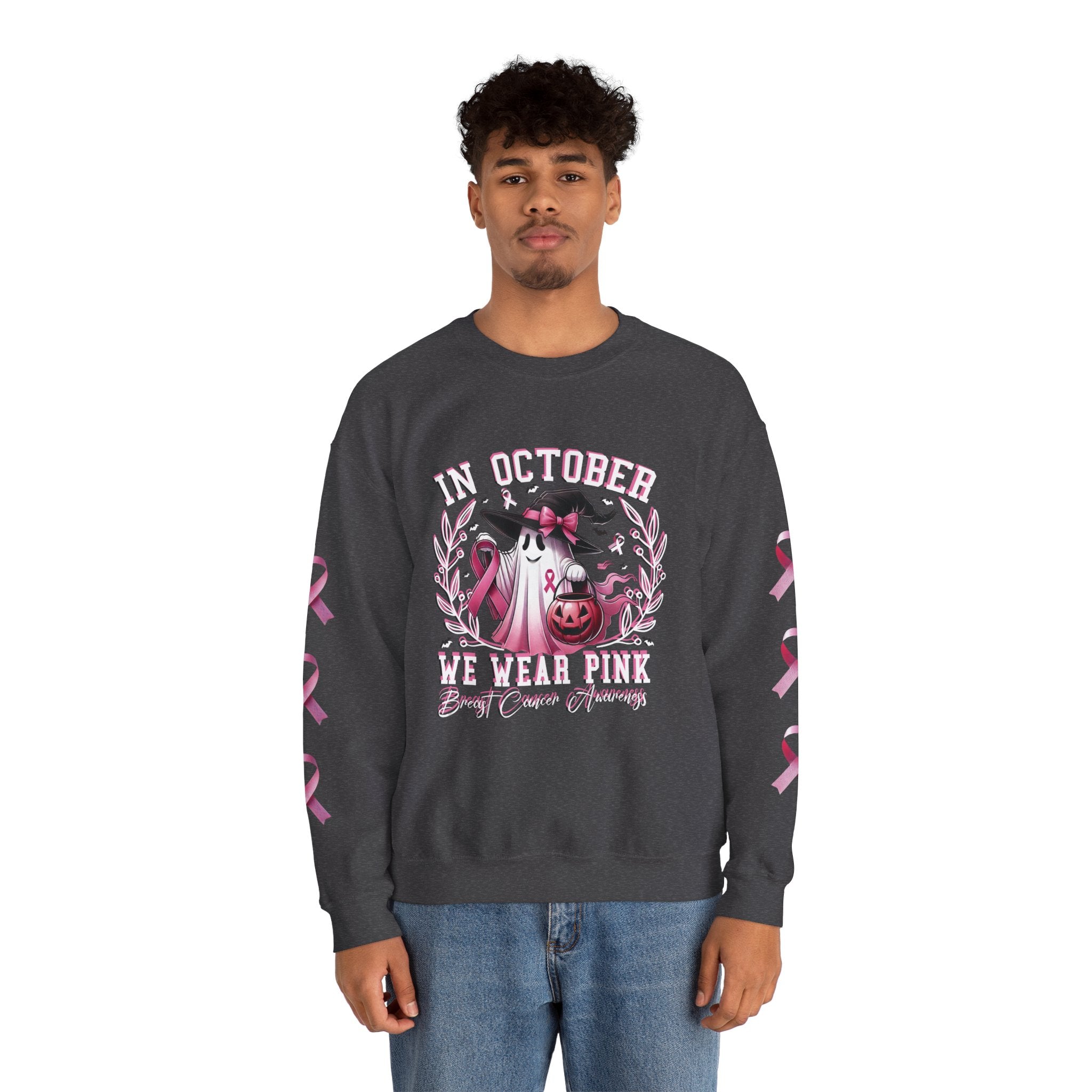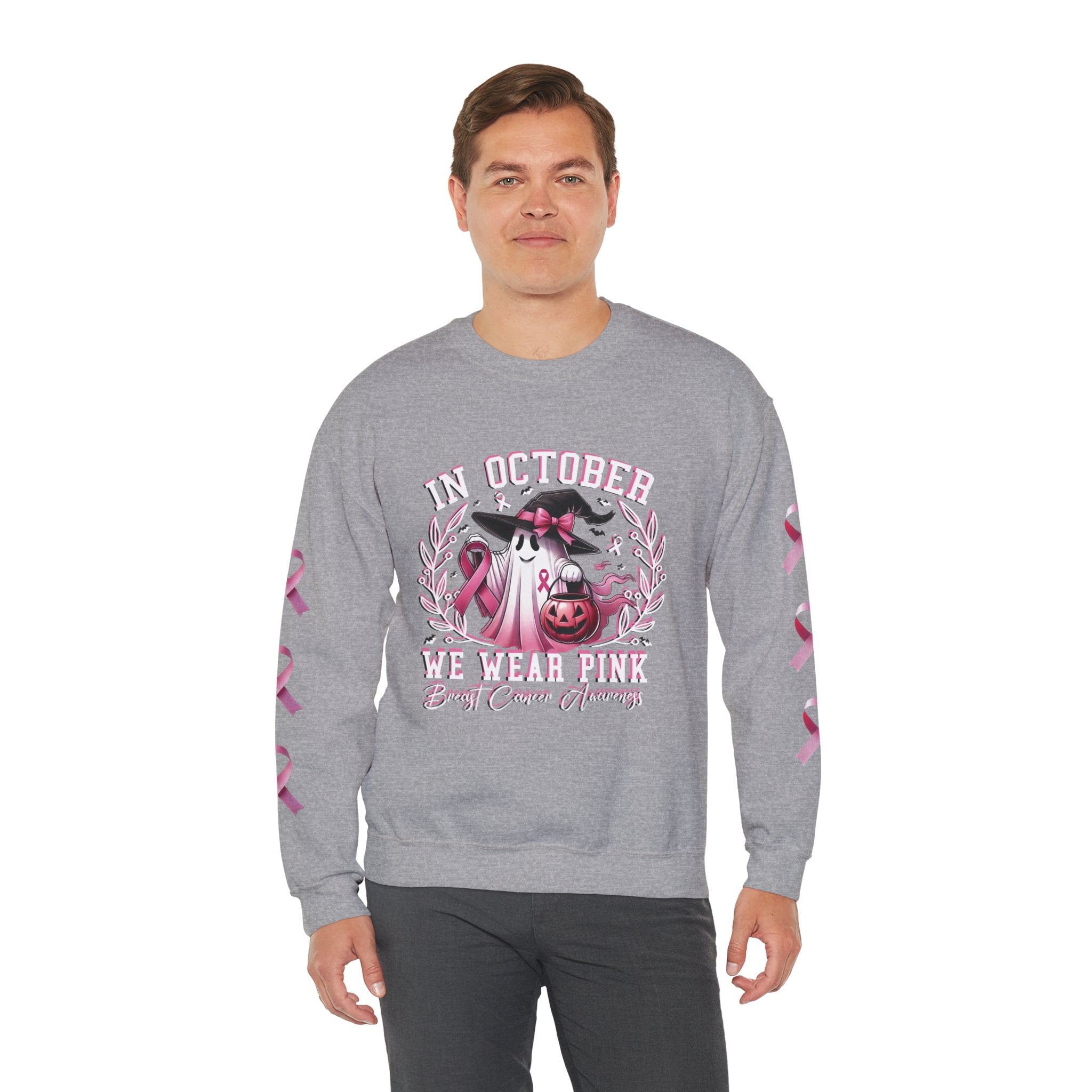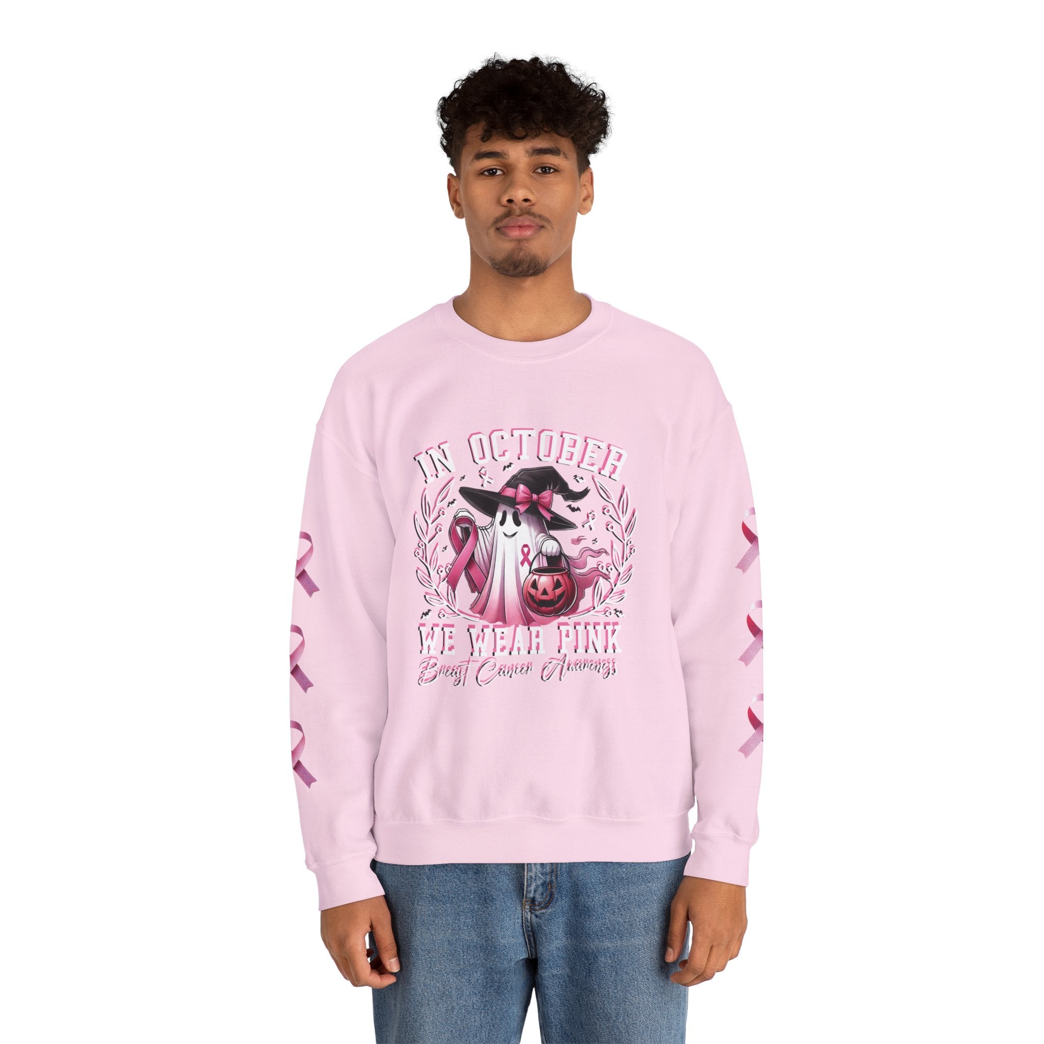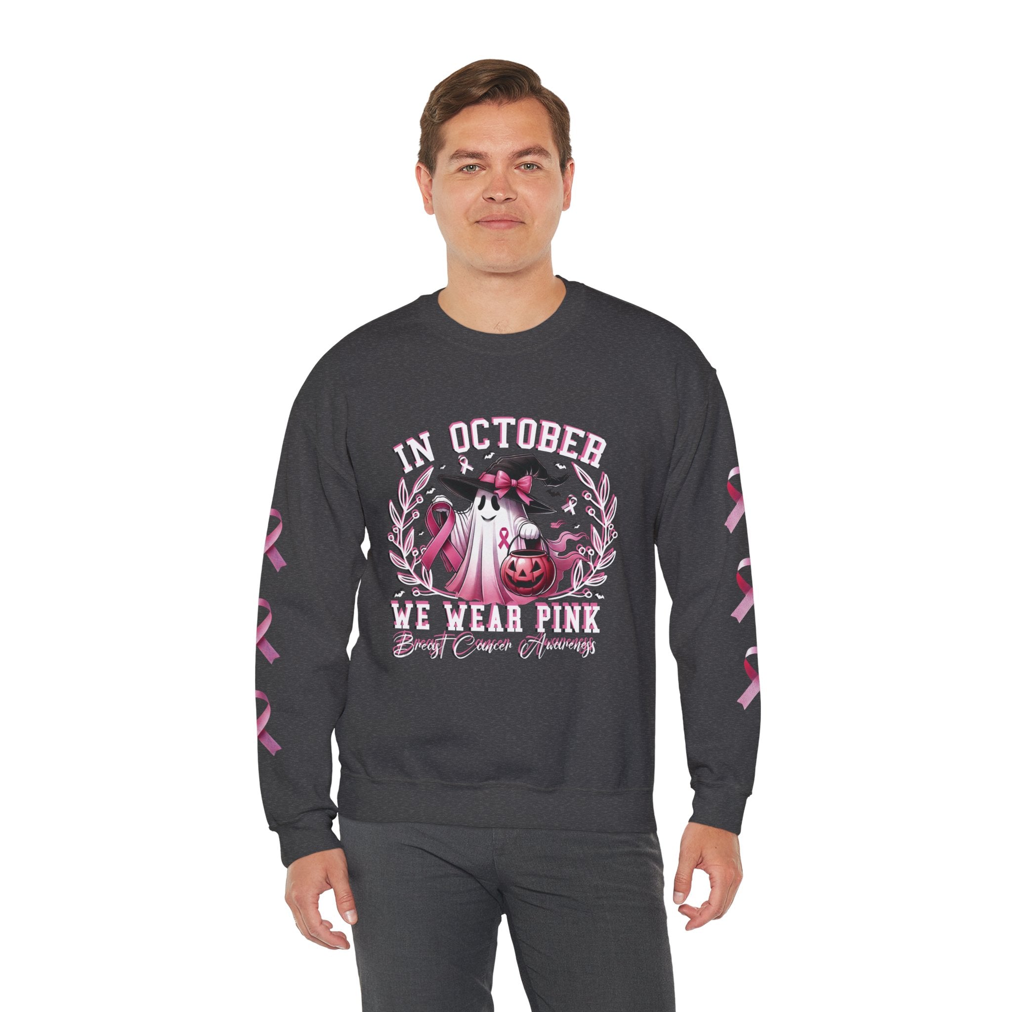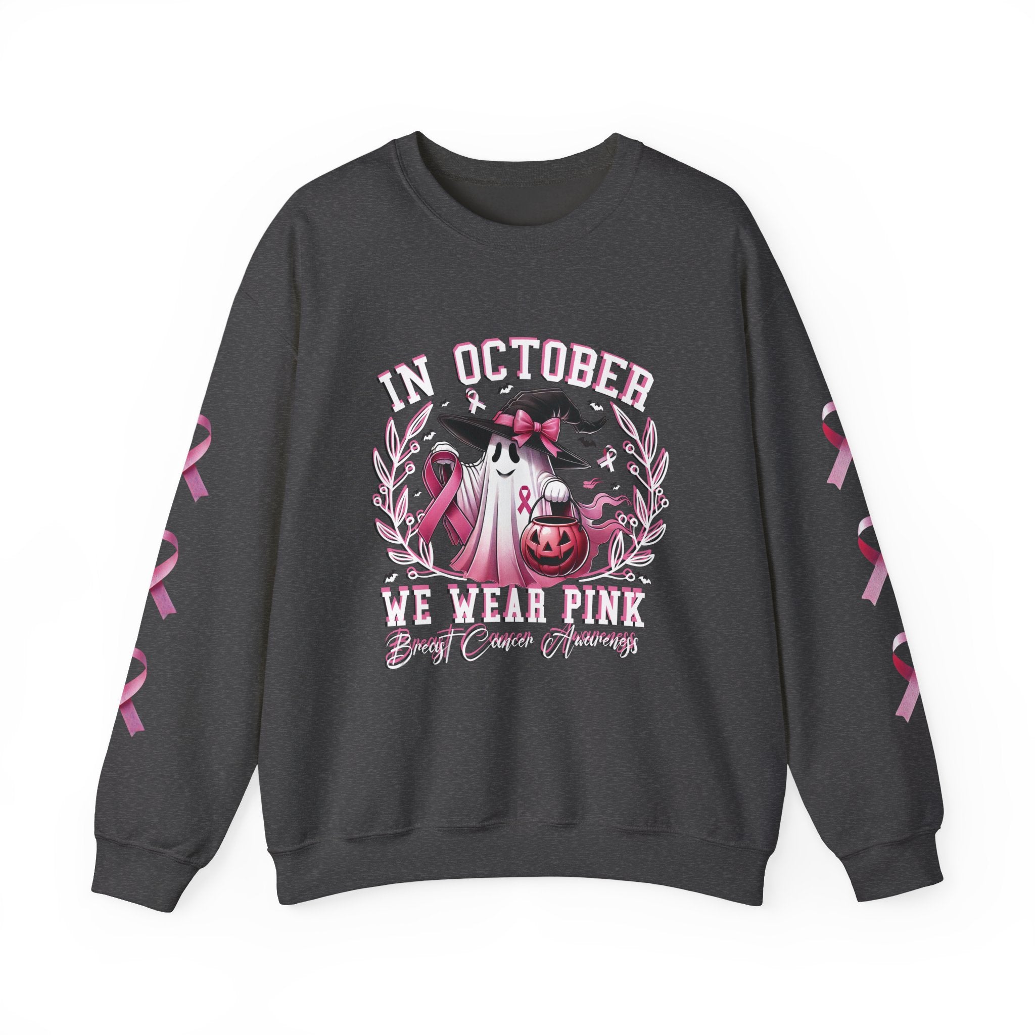 Spooky season meets strength. This pink crewneck sweatshirt fuses the spirit of Halloween with the power of breast cancer awareness. Featuring a bold ghost-in-ribbons graphic and sleeve details that stand out, it’s more than just a sweatshirt—it’s a statement of solidarity, resilience, and seasonal style. Cozy, durable, and awareness-driven, it’s designed to keep you warm while keeping the message alive.