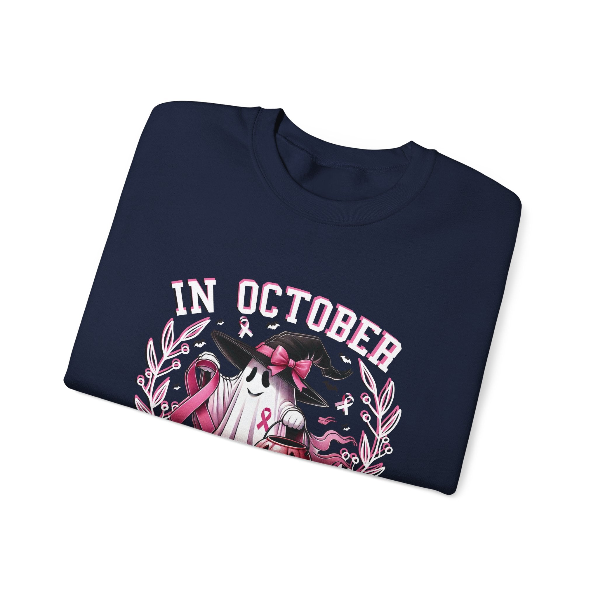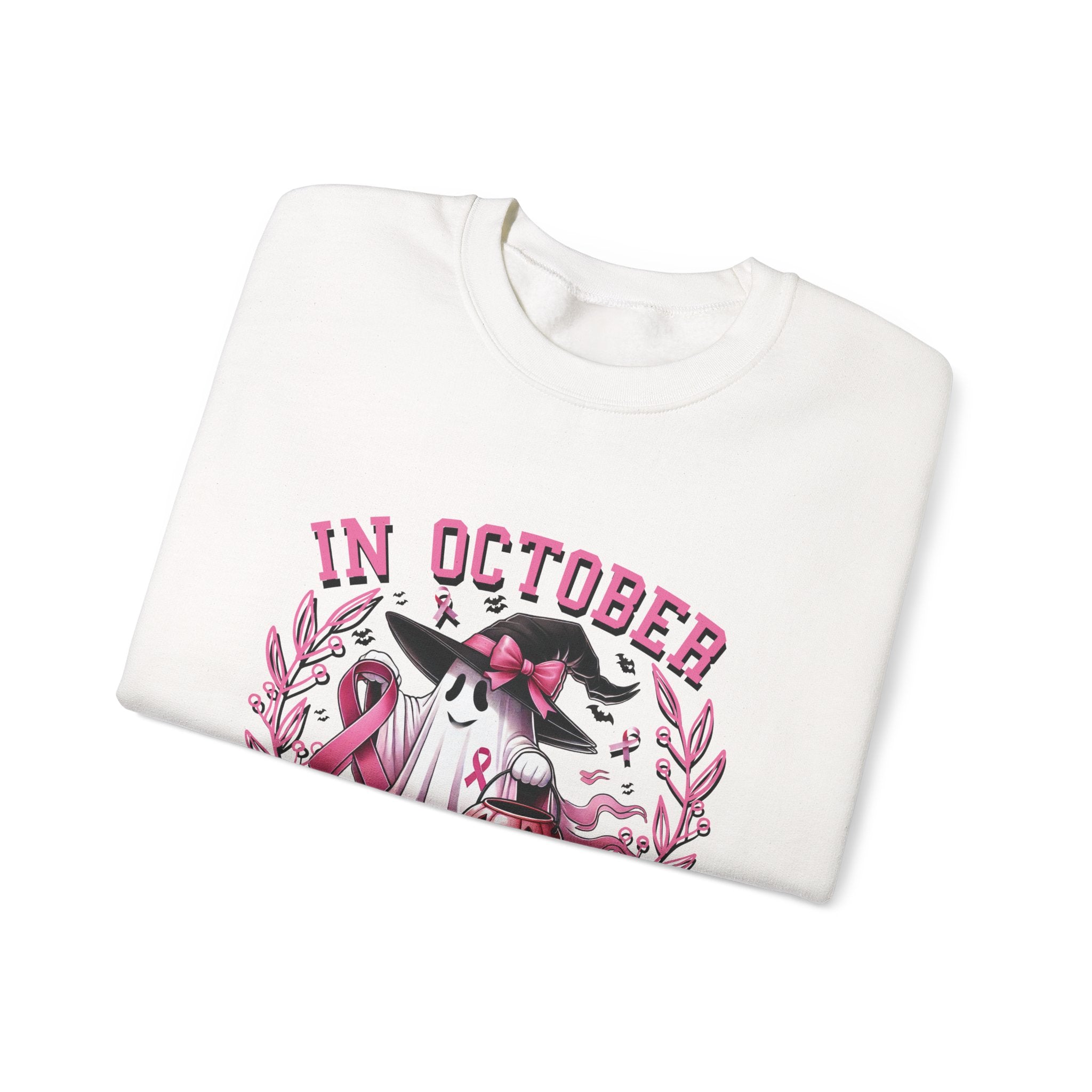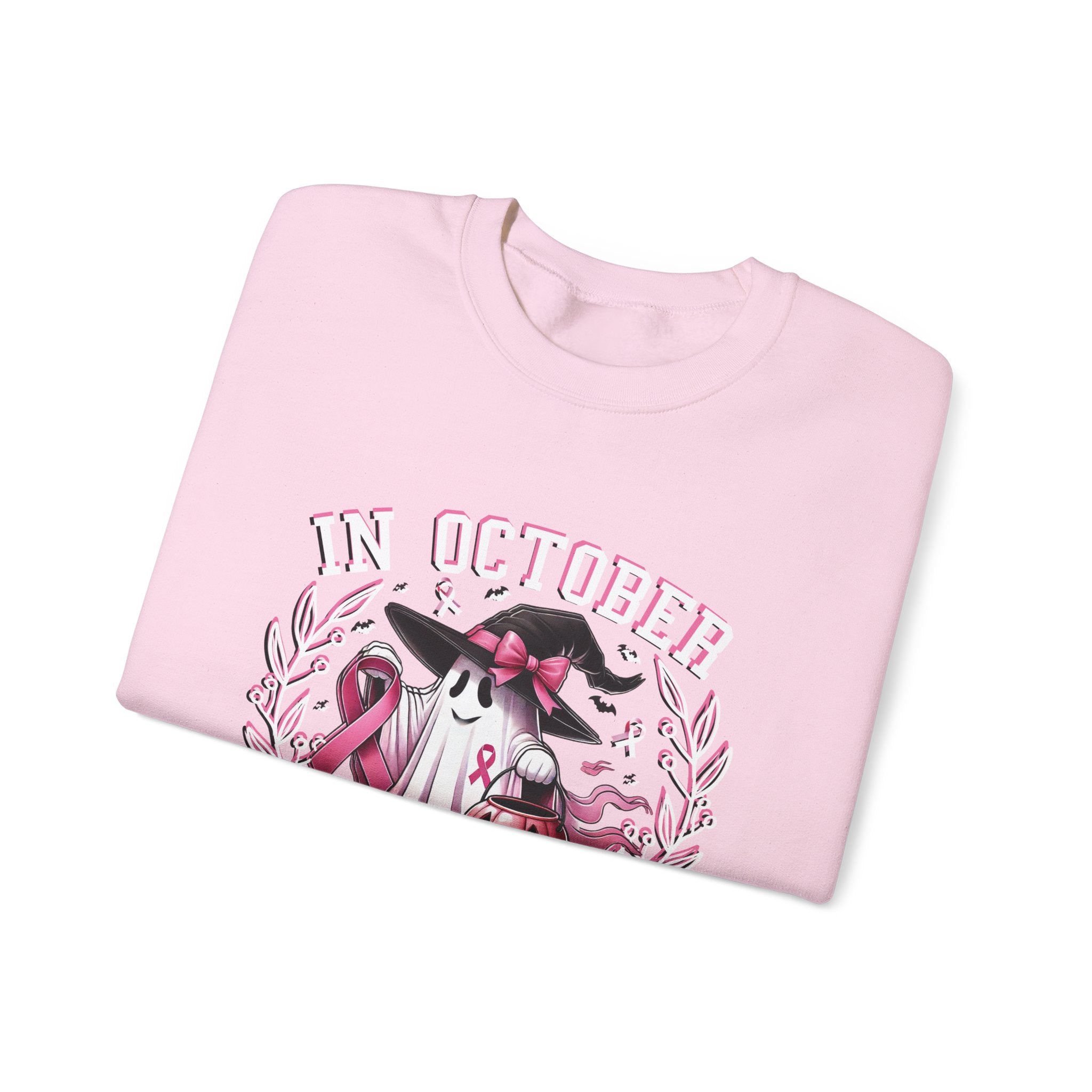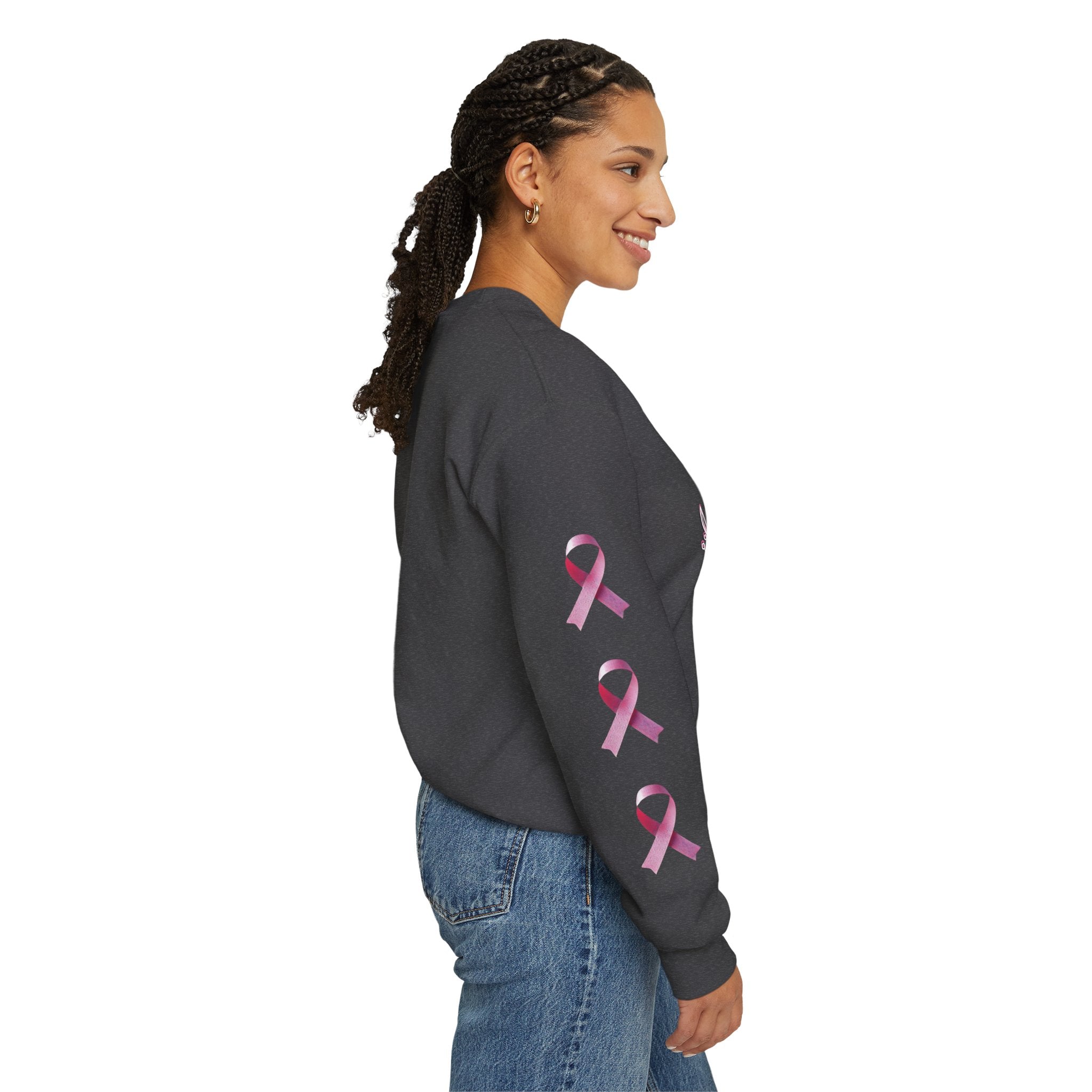 Spooky season meets strength. This pink crewneck sweatshirt fuses the spirit of Halloween with the power of breast cancer awareness. Featuring a bold ghost-in-ribbons graphic and sleeve details that stand out, it’s more than just a sweatshirt—it’s a statement of solidarity, resilience, and seasonal style. Cozy, durable, and awareness-driven, it’s designed to keep you warm while keeping the message alive.