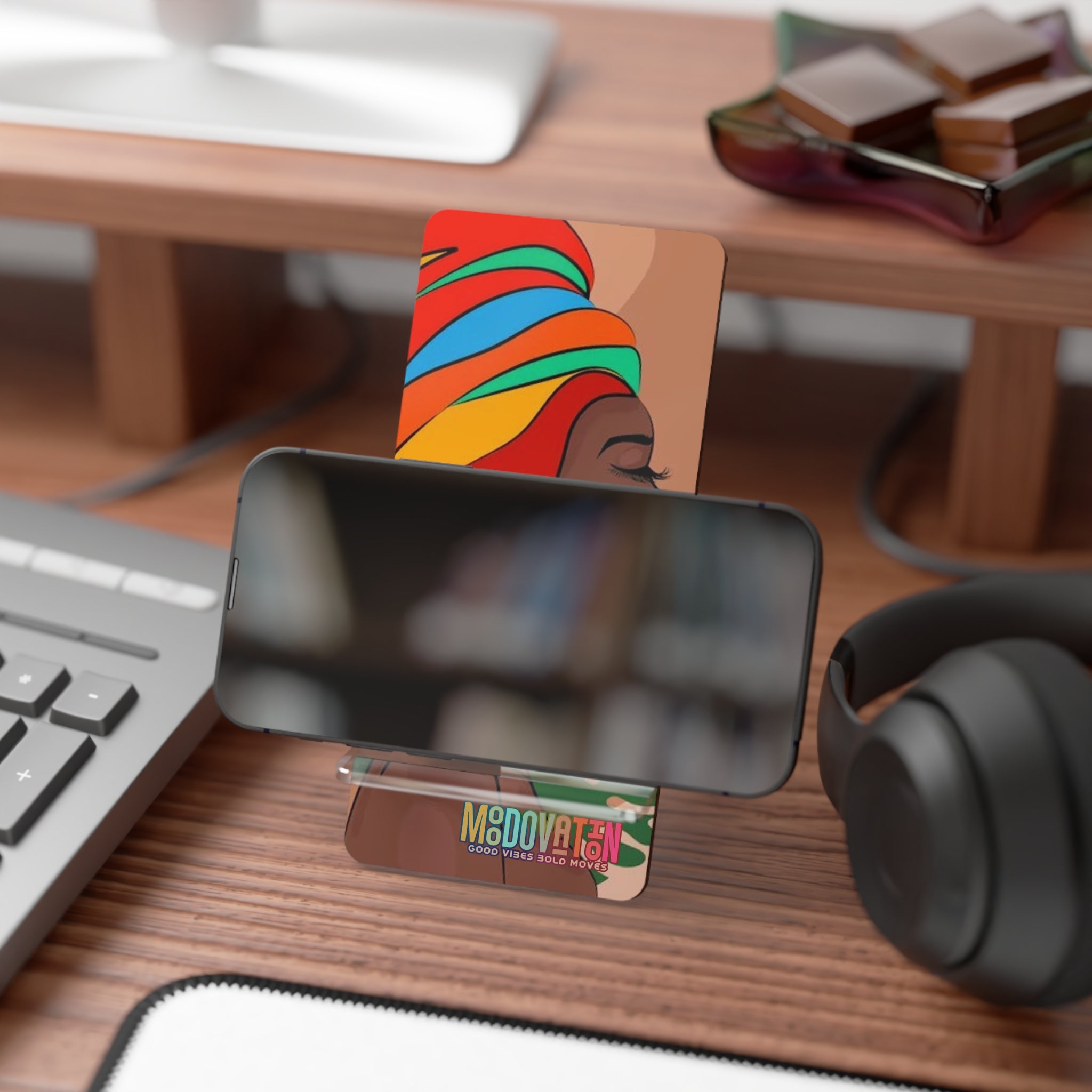 Celebrate boldness every time you glance at your phone. The Crown & Color Flow Mobile Stand features vibrant Afrocentric art with radiant hues and regal energy, turning your desk into a gallery of pride and power. Whether you’re working, creating, or just vibing, this stand holds your phone steady while reminding you of your own brilliance.