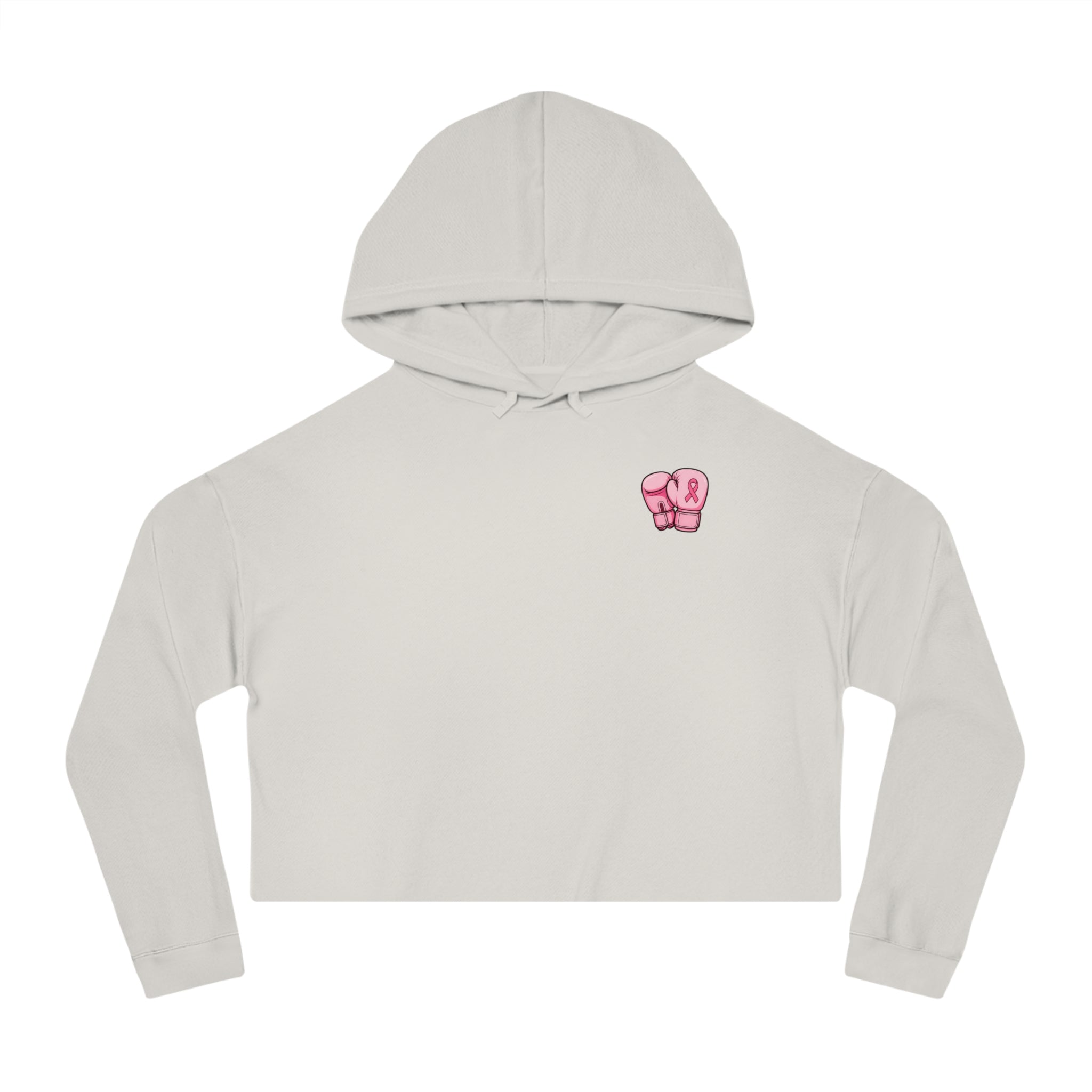 Stand fierce, stay stylish. This cropped camo hoodie brings together bold streetwear and a powerful cause. With embroidered pink boxing gloves carrying the Breast Cancer Awareness ribbon, it’s more than fashion—it’s a statement of resilience, strength, and the fight to keep going.