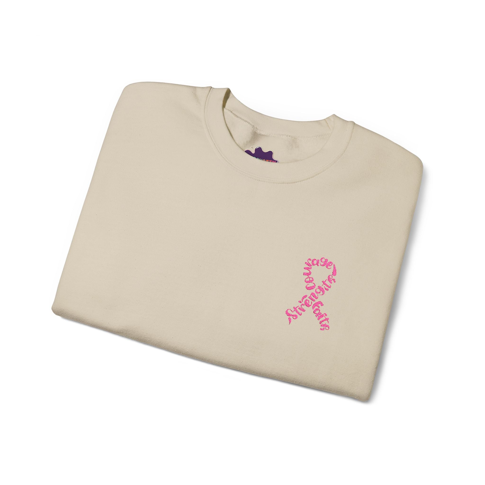 Courage, Strength & Faith – Breast Cancer Awareness Unisex Crewneck Sweatshirt